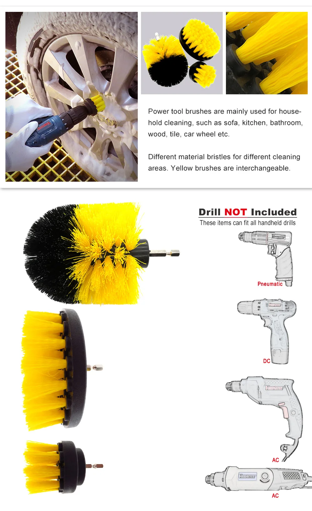 Особенности: Этот комплект содержит нейлоновые силовые щетки средней жесткости, которые будут прикреплены к вашему любимому беспроводному сверлу. 3 различных размера и формы кистей для чистки поверхностей ванной комнаты. Эти нейлоновые щетинки не царапаются и могут быть использованы на ваннах, раковинах, плинтусах, стеклопластиковые душевые кабины, душевых дверных дорожках и фарфоре. Все три кисти имеют четверть дюймовые Быстросменные валы, беспроводная дрель в комплект не входит. Параметры Тип: набор сверл для скруббера Материал: нейлон Цвет: желтый Количество: 3 шт. Вес нетто: 250 г/8,8 унций Посылка: 3 * сверлильная щетка для скруббера