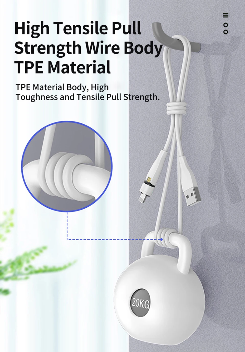 -Светодиодный индикатор: легко найти кабель в ночное время со светодиодным индикатором. Мягкое освещение не ослепляет вас во время сна. -Ультра прочный: высокопрочный провод из ТПЭ. -Простота зарядки: вилка отделена от кабеля. Вилка может оставаться на телефоне, только 1 секунда подключена для зарядки. -Поддержка вращения на 180 и 360 градусов, очень удобно во время игр. -Поддержка быстрой зарядки и передачи данных.