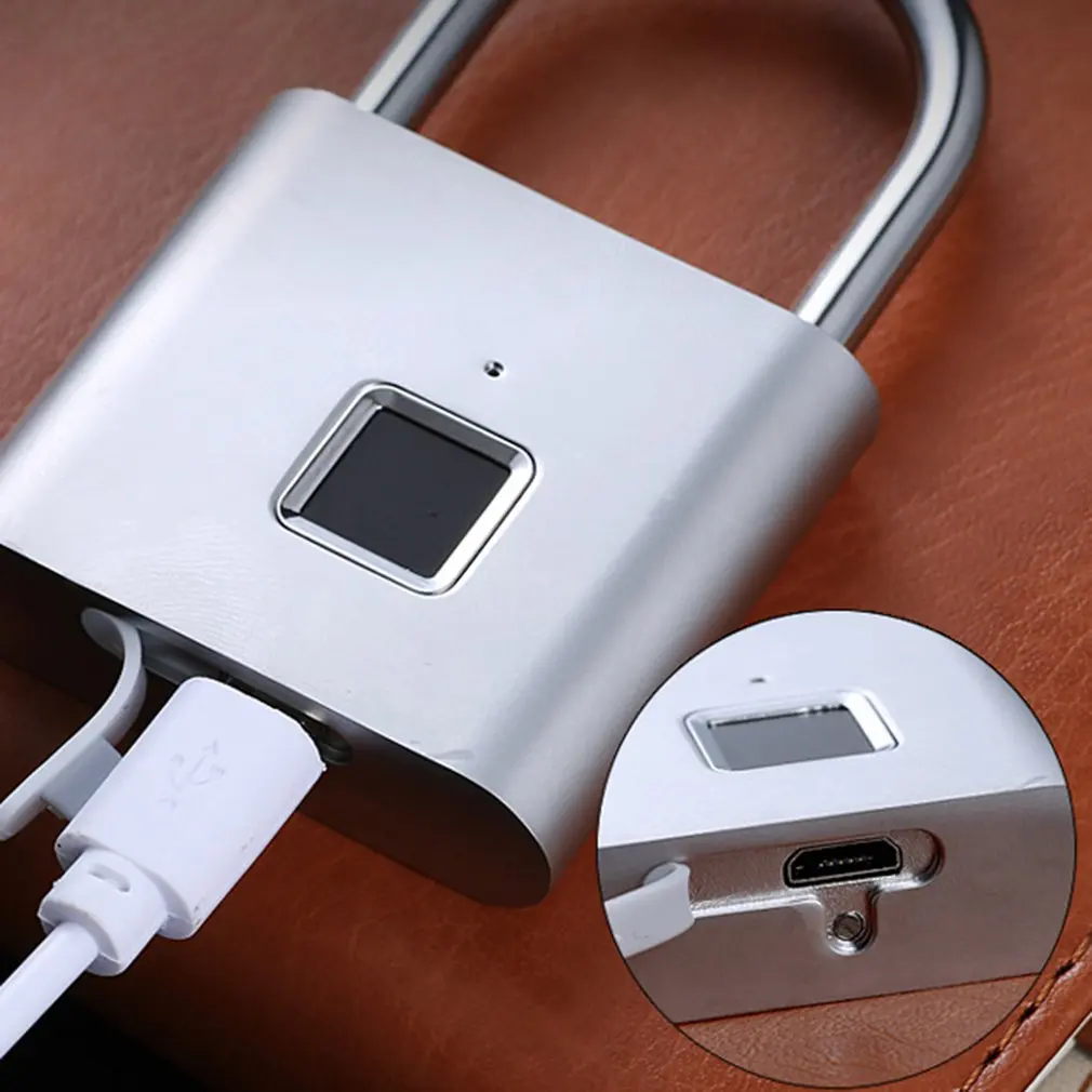 Особенности: 1. Разблокировка отпечатков пальцев: разблокировка отпечатков пальцев, разблокировка пальцами всего 2. Корпус замка из цинкового сплава: прочная конструкция, сплав цинка и защита от брызг, корпус замка защищает ваши устройства от воров 3. Портативный: портативный, малый размер и вес светильник. Описание: 1. Оповещение о низкой мощности и технология быстрой зарядки. 2. Для путешествий: чемодан, сумочка, дорожная сумка, багаж, ноутбук, рюкзак, сумочка. Характеристики: Размер: 47*13*76 мм Материал: цинковый сплав Зарядка: USB зарядка Цвет: серебристый Посылка включает в себя: 1 * умный замок отпечатков пальцев