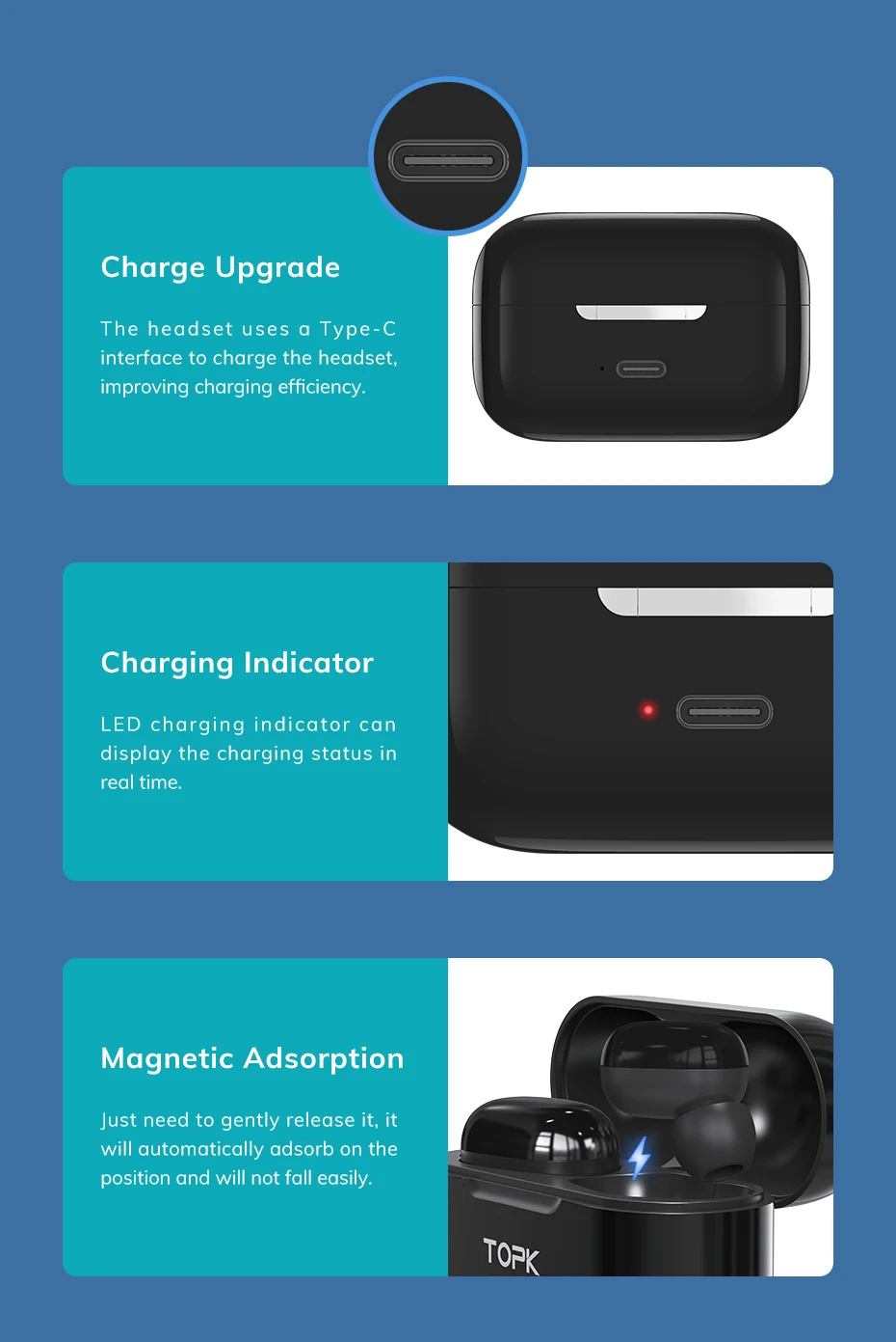 TOPK беспроводные bluetooth наушники IPX5 водонепроницаемые