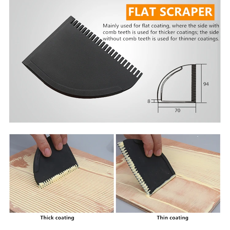 5. Может пригодиться для склеивания В Стыке (операции по соединению), секции деревянных досок (работа по обшивке панелей), узкий зазор (Сращивание по врезу), скребковый клей с плоской пластиной, удобный лоток для клея.
