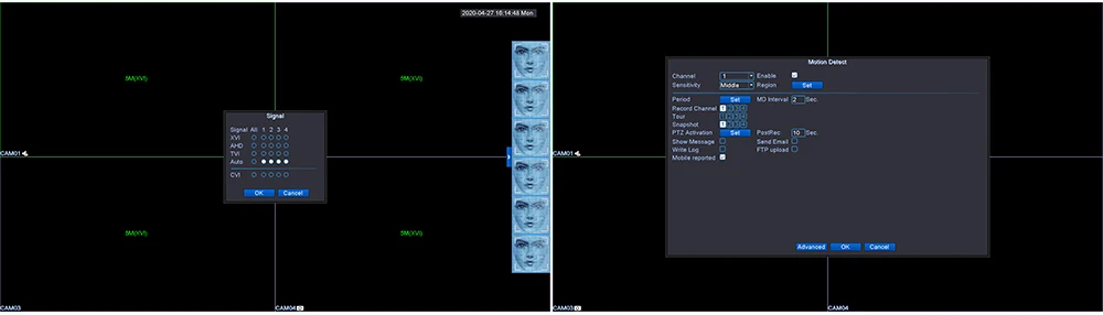 Поддержка распознавания лица, но камера AHD должна поддерживать функцию XVI