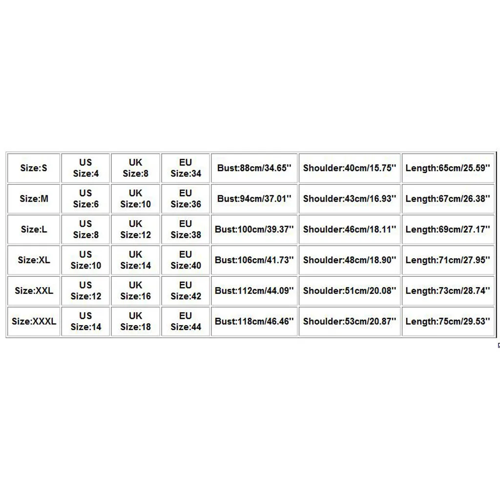 Размер Американский размер Размер Великобритании Европейский размер Бюст Плечо Длина S 4 8 34 88 см/34,65'' 40 см/15,75'' 65 см/25,59'' М 6 10 36 94 см/37,01'' 43 см/16,93'' 67 см/26,38'' L 8 12 38 100 см/39,37'' 46 см/18,11'' 69 см/27,17'' XL 10 14 40 106 см/41,73'' 48 см/18,90'' 71 см/27,95'' XXL 12 16 42 112 см/44,09'' 51 см/20,08'' 73 см/28,74'' XХХL 14 18 44 118 см/46,46'' 53 см/20,87'' 75 см/29,53''