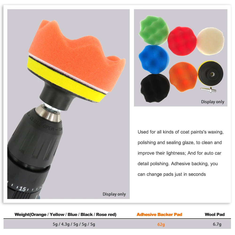 Идеальный аксессуар для полировки автомобиля. 7 шт. в одном комплекте, соответствуют вашим различным требованиям. Простота в эксплуатации. Тип: набор полировальных подушек для автомобиля Материал: губка и шерсть Количество: 7 шт. Примечание: Из-за разницы в освещении и настройках экрана цвет изделия может немного отличаться от изображения. Возможны незначительные отклонения в размерах из-за различных измерений вручную. Пакет включает в себя: 5 шт. x поролоновые буферные прокладки 1 шт. х Белые Шерстяные буферные подушечки 1 шт. xBacking Pad с адаптером для сверления