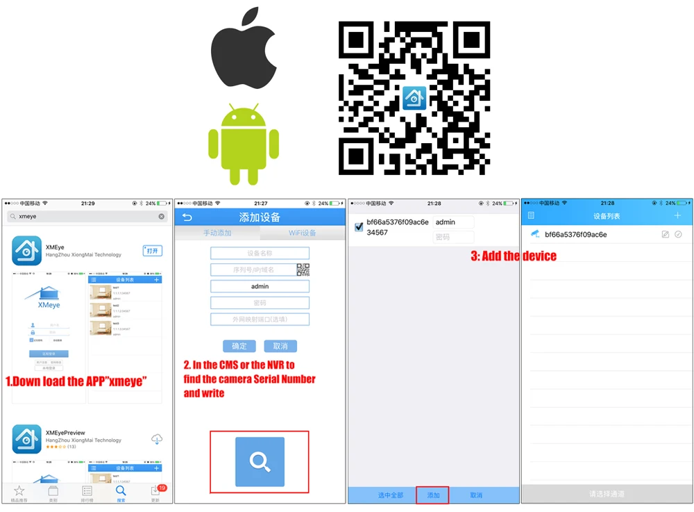 Технология P2P поддерживает удаленный доступ к мобильному устройству, просто вставьте приложение на свой телефон, сканируя QR cade или сохраняя его из приложения, удаленно просматривайте камеру в любое время и в любом месте. ПК использует www.xmeye.net для посещения камеры.