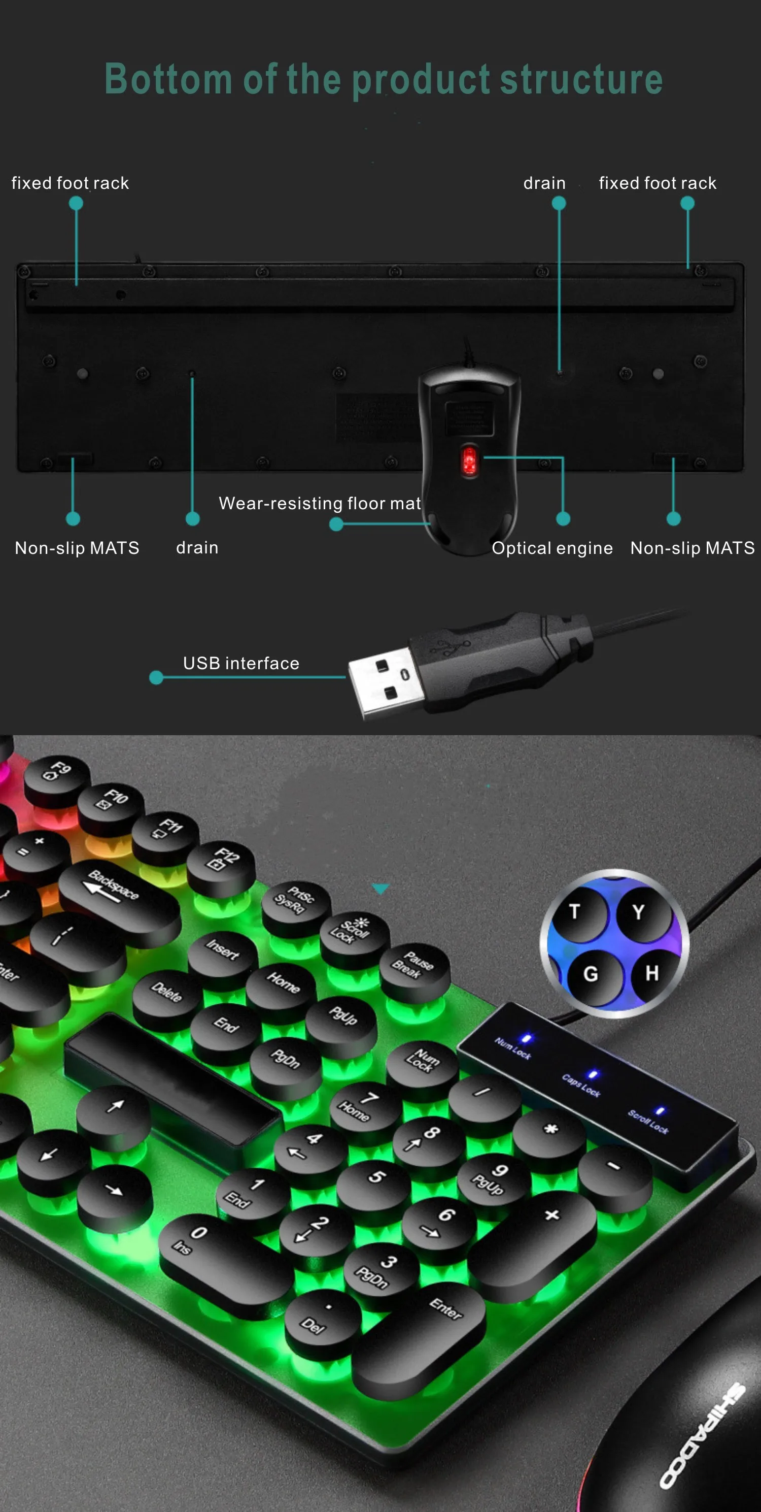 4)Задняя часть клавиатуры имеет регулируемый штатив для лучшего опыта.