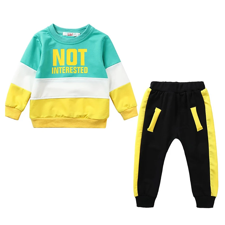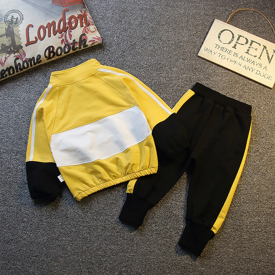 Детская одежда Спортивный костюм для мальчиков хлопковые топы для маленьких мальчиков + Брюки Модный осенний комплект из 2 предметов для маленьких мальчиков Детский костюм