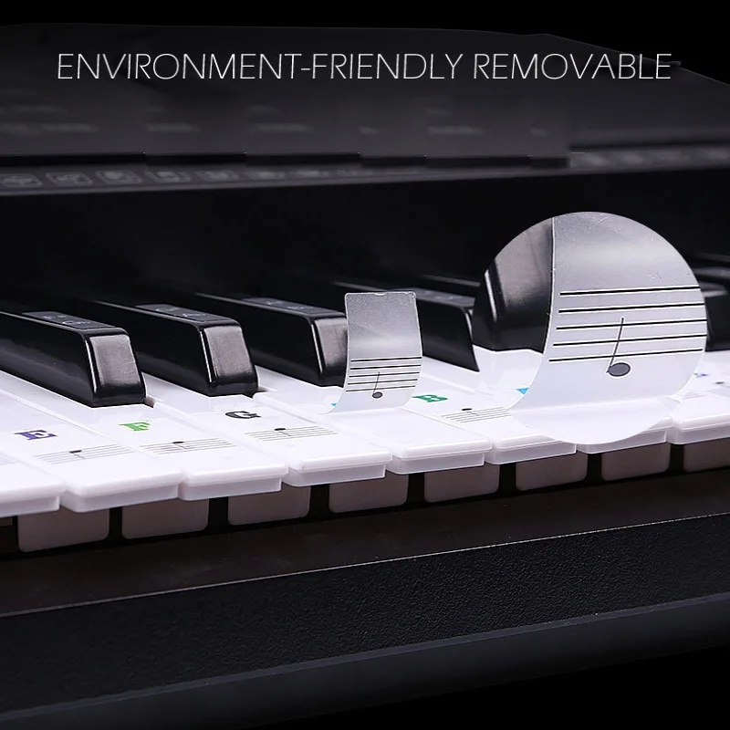 Материал: прозрачный ПВХ Характеристики: прозрачный, съемный Подходит для: фортепиано, электронного органа, ручного пианино Вес: 0,02 КГ/0,7 oz/0.04lb Цвет: черный, цвет насыщенный Количество клавиш: 37/49/54/61/88 клавиши пианино Пол: унисекс, мужчины, женщины ype: наклейка на клавиатуру