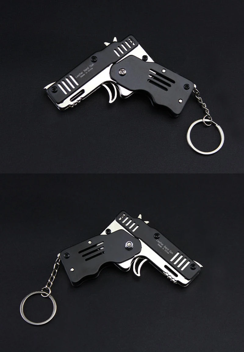 Это очень забавный мини-пистолет с резиновой лентой. Его можно использовать как брелок. Вы можете подумать об этом как о детской игрушке. Я думаю, что маленькая рука ребенка должна хорошо сочетаться с ней. Название продукта: складной кожаный пистолет Посылка включает в себя: 1 кожаный пистолет 100 резинок Размер продукта: Расширение: 70 x 42x 18 мм Складной: 90x83x18 мм Уникальная механическая структура проста и надежна, и стук шестеренок на верхних ребрах будет очаровывать вас.
