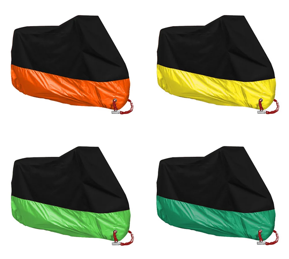 15 цветов: черный, серебристый, красный, серебристый, синий, фиолетовый, коричневый, флуоресцентный зеленый, зеленый, желтый, оранжевый, розовый, голубой, камуфляжный, темно-зеленый светильник. Размер обложки: M,L,XL,XXL,3XL,4XL