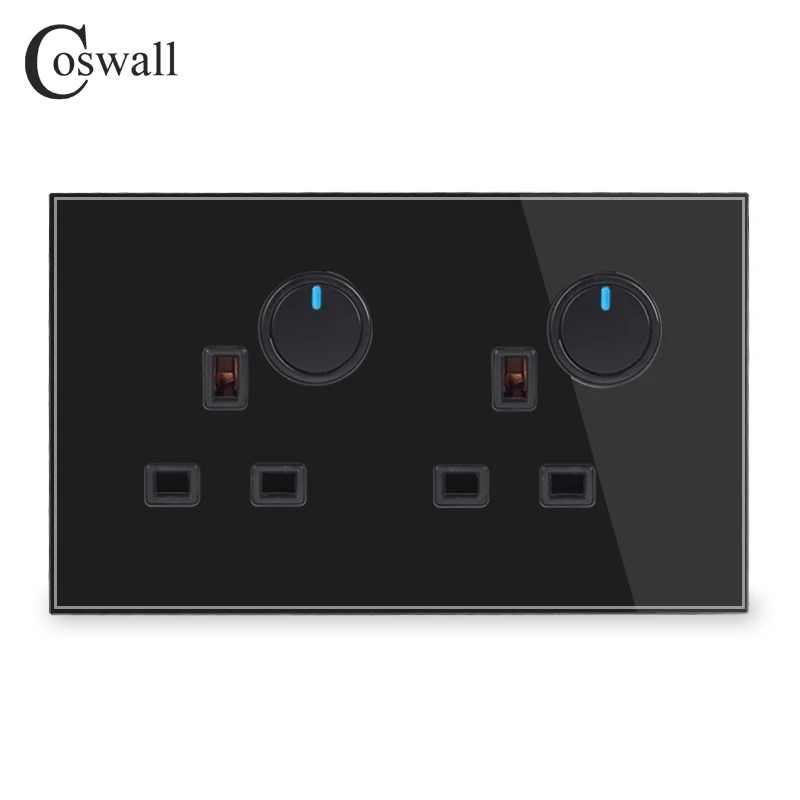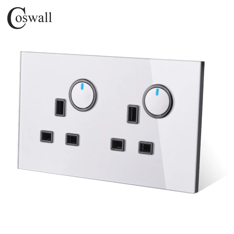 Стеклянная панель Coswall 13A 2 Gang UK Standard, настенная розетка 2 Gang 2 Way On / Off, переключатель светильник, светодиодный индикатор