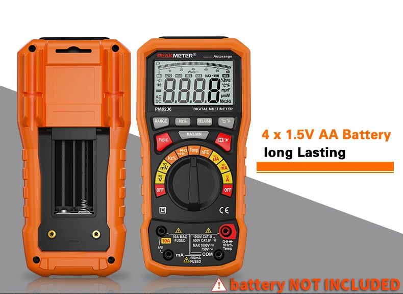 Официальный PEAKMETER PM8236 автоматический ручной Диапазон Цифровой мультиметр с TRMS 1000V температурная емкость Частотный тест
