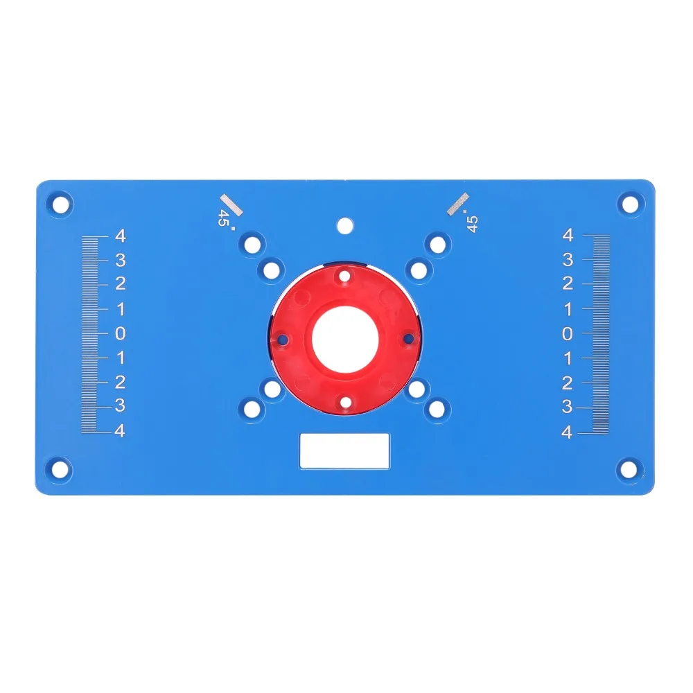 Набор инструментов для деревообработки включает в себя 1 вставную пластину для стола маршрутизатора, 4 кольца со вставками и несколько крепежных винтов.