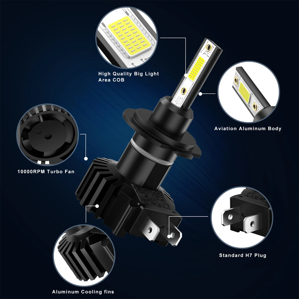Импортные чипы COB светодиодный, с 60 Вт, 12,лм на пару, 6000 К холодный белый. Сфокусированная Конструкция луча обеспечивает более широкий и Дальний диапазон освещения, который в 2 раза ярче, чем ваша оригинальная галогенная лампа.