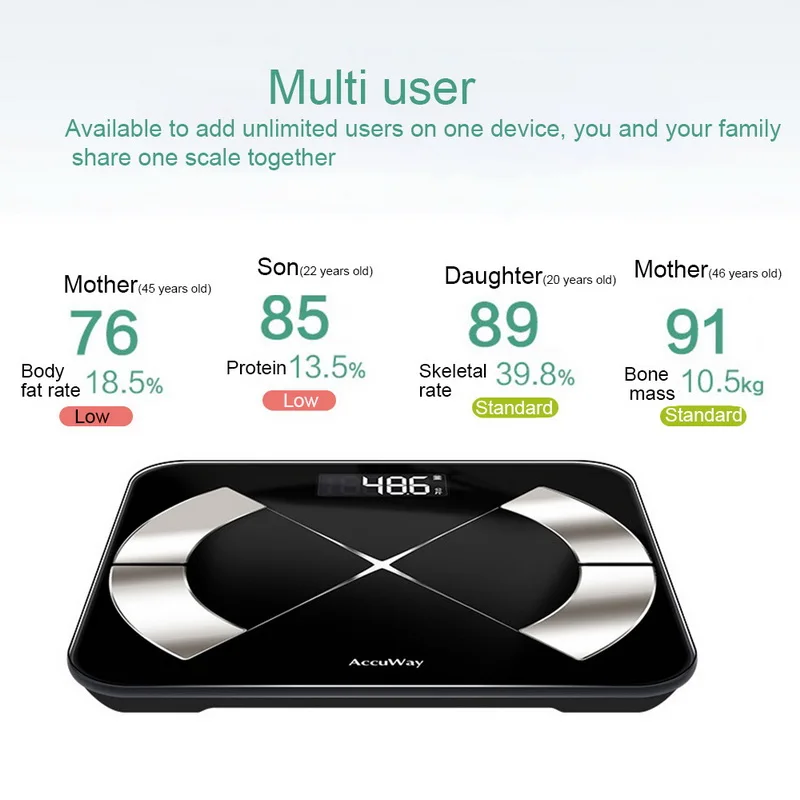 <Многопользовательский: можно добавить неограниченное количество пользователей на одном устройстве, вы и ваша семья делитесь одной шкалой вместе.