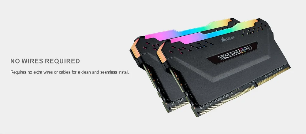 Серия Vengeance RGB PRO разогнутая Память DDR4 загорает ваш компьютер с завораживающим, динамическим многозонным RGB освещением, обеспечивая при этом лучшую производительность DDR4.