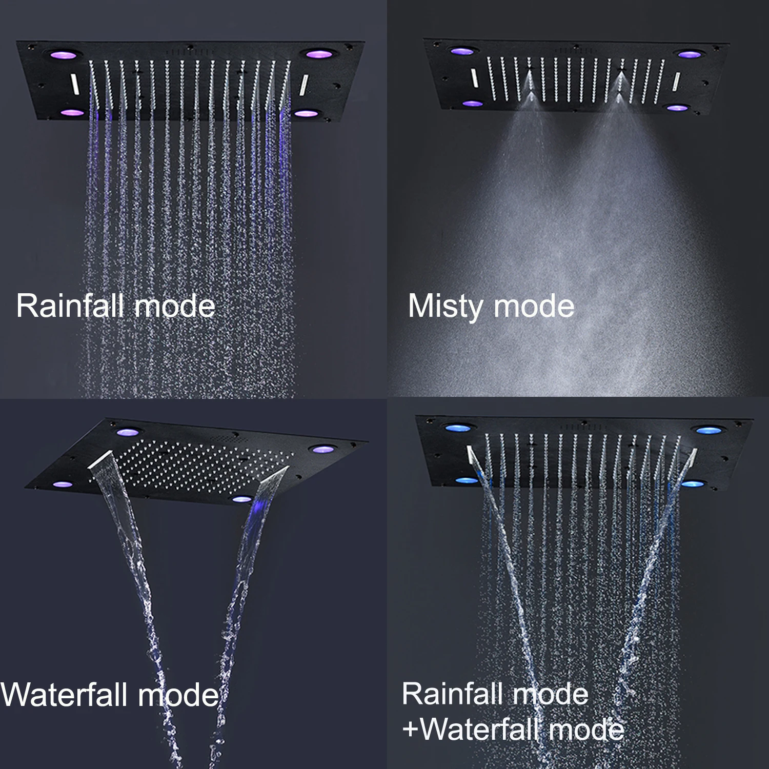 Bluetooth музыкальная душевая головка для ванной комнаты, потолочный светодиодный набор для душа с водопадом, черный смеситель для душа, термостатический светодиодный смеситель для душа