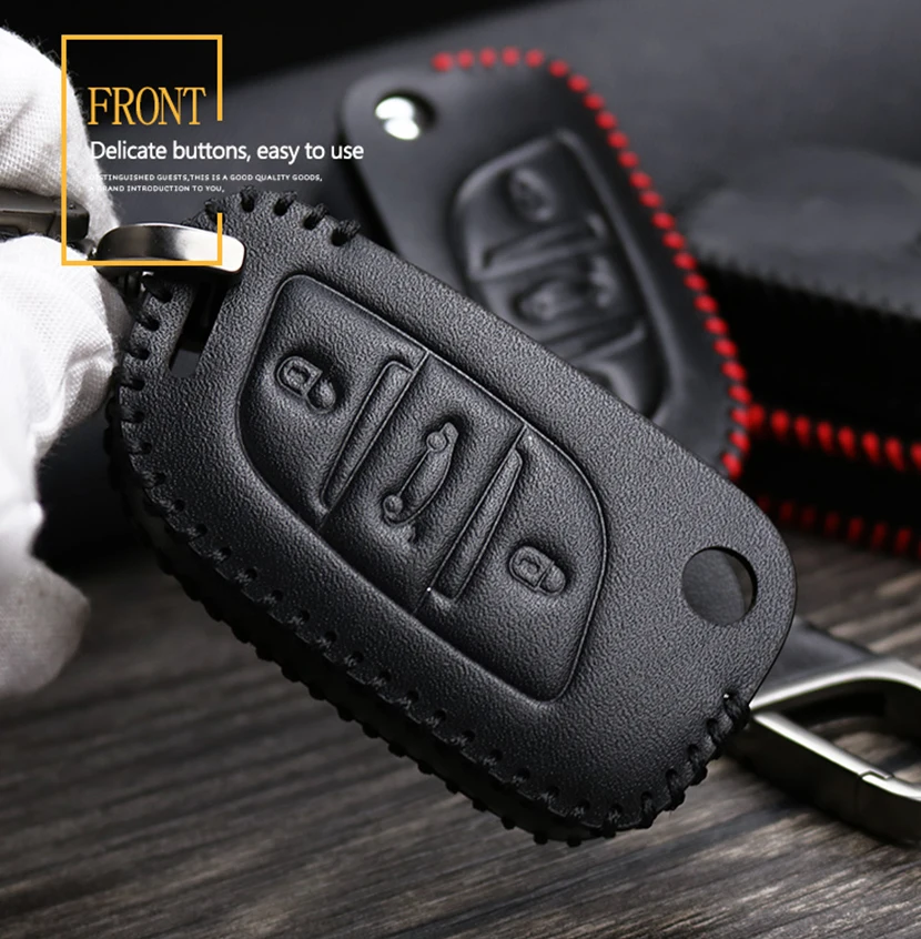 Кожаный чехол для автомобильного ключа для Peugeot 5008 107 106 3008 208 308 508 307 206 407 RCZ Expert Boxer, металлический брелок для ключей, аксессуары