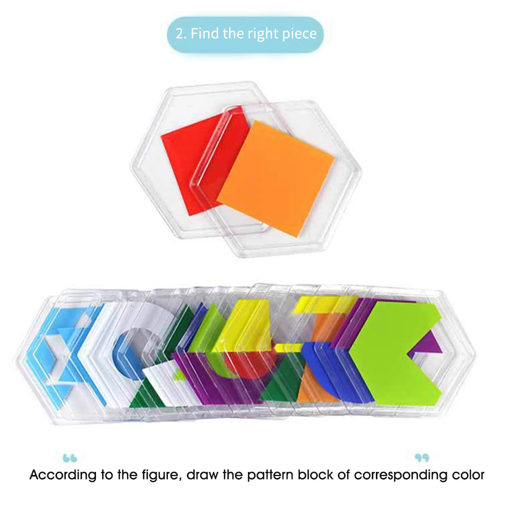 Найдите соответствующие цветные блоки в соответствии с схемой, наблюдайте за узорами на тему и складывайте цветные блоки