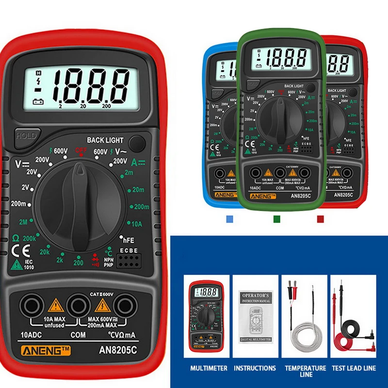 ** Многофункциональность: Широкий диапазон тестов на напряжение переменного/постоянного тока, сопротивление, зуммер, тестовые диоды, hFE и температуру.