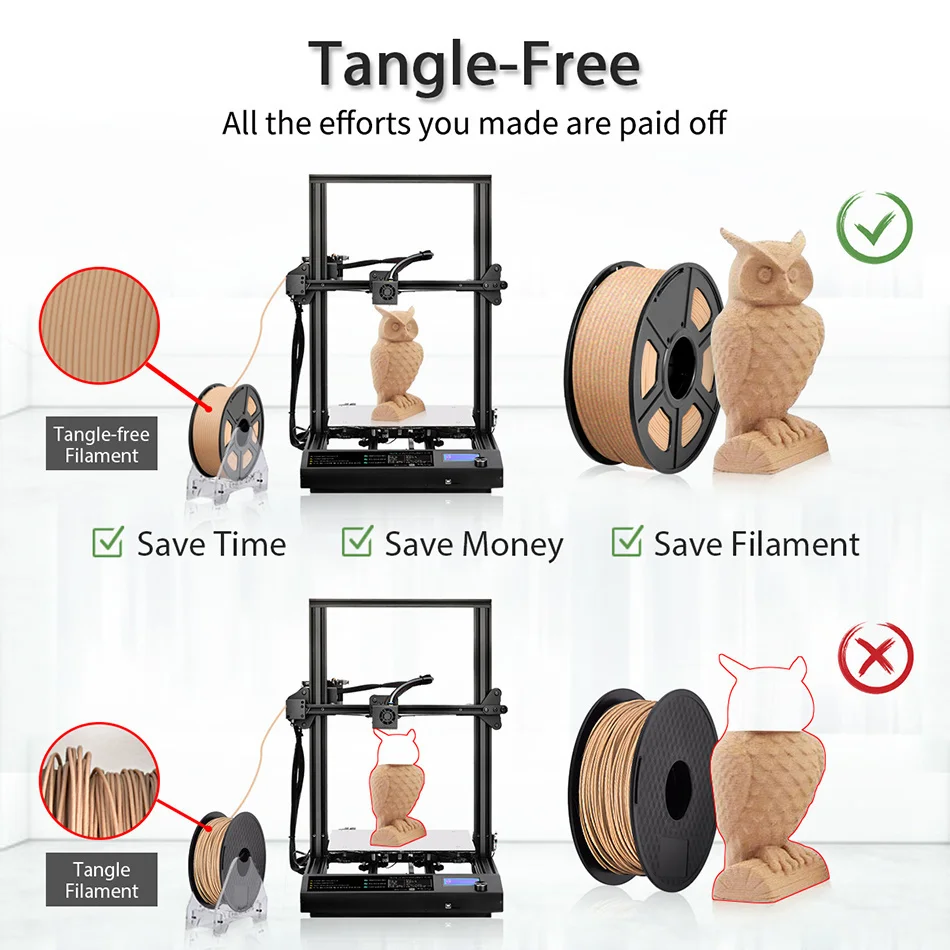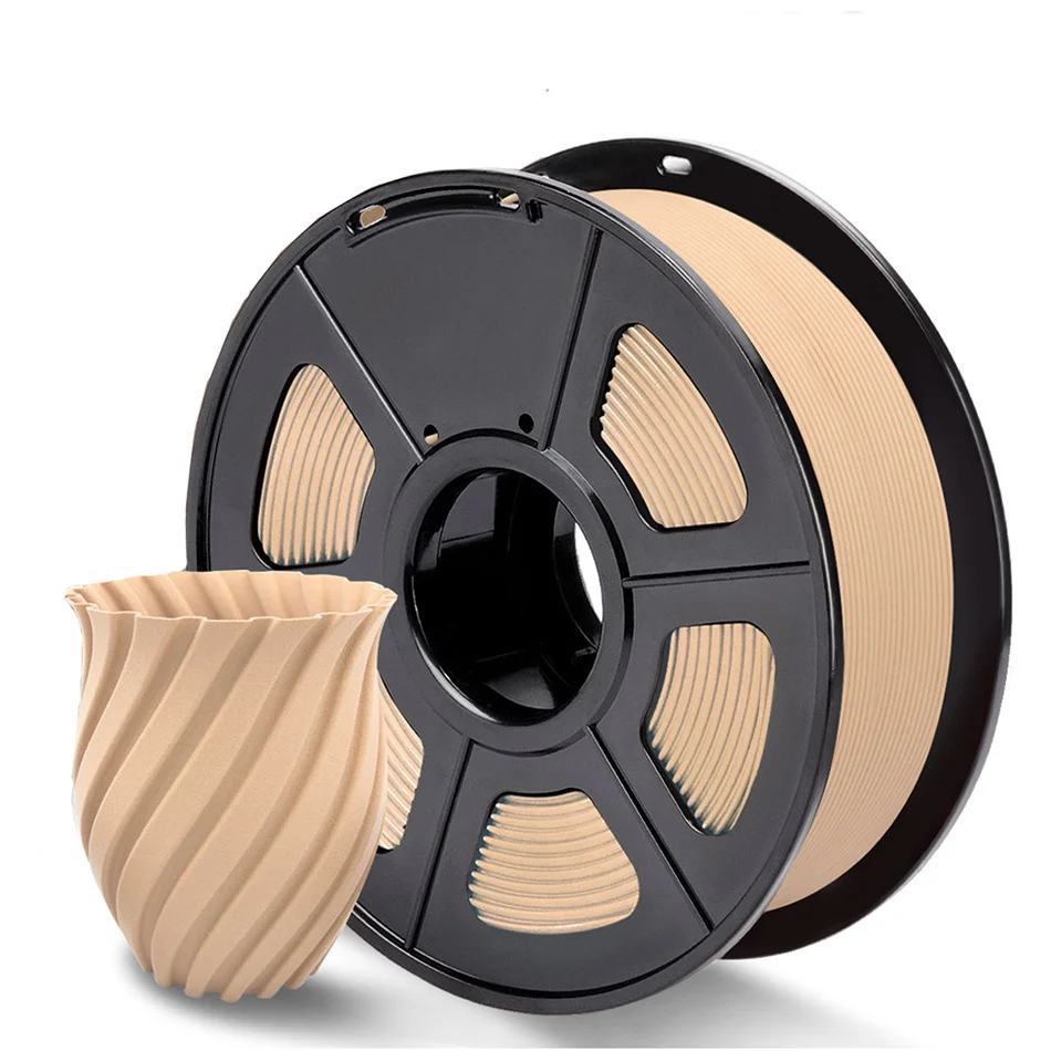 Древесная нить PLA изготовлена из 10% древесного волокна и 80% полиматической кислоты.