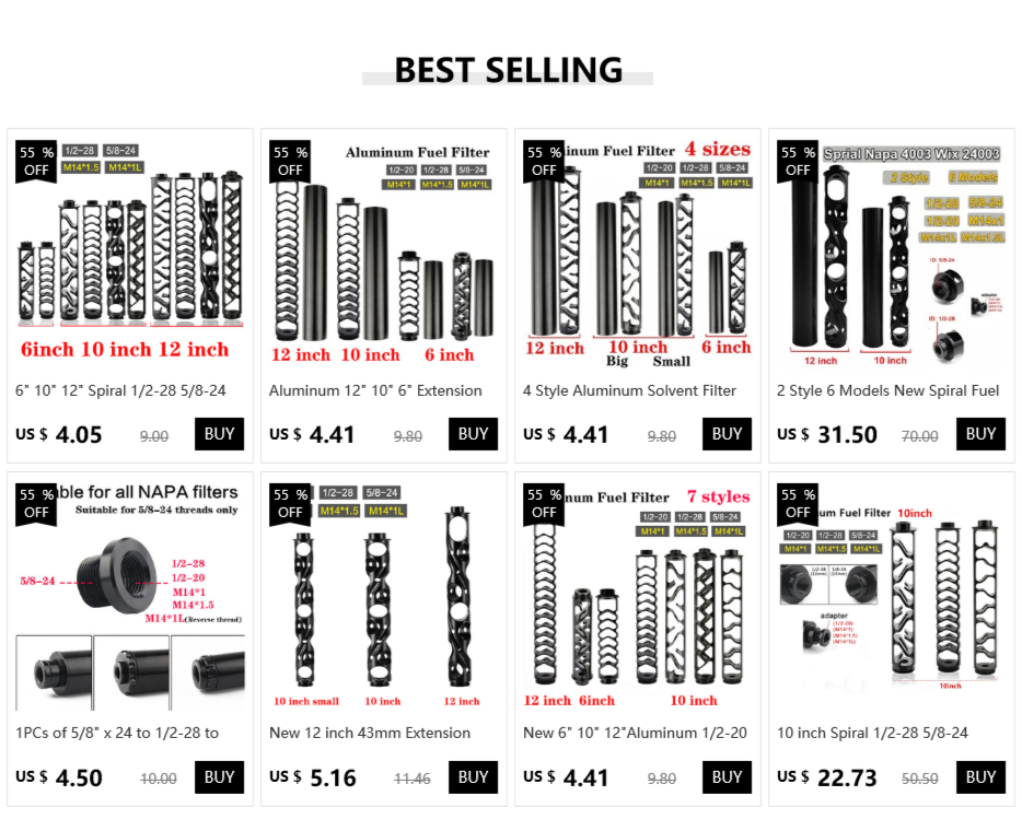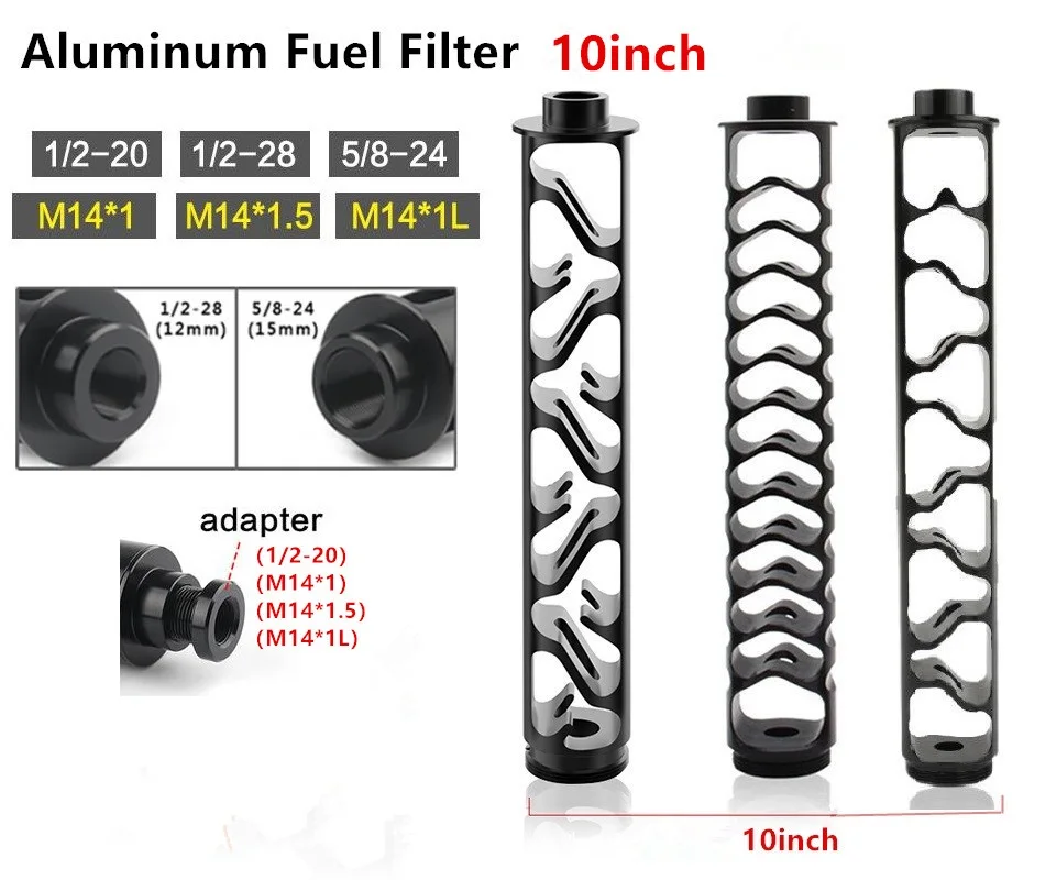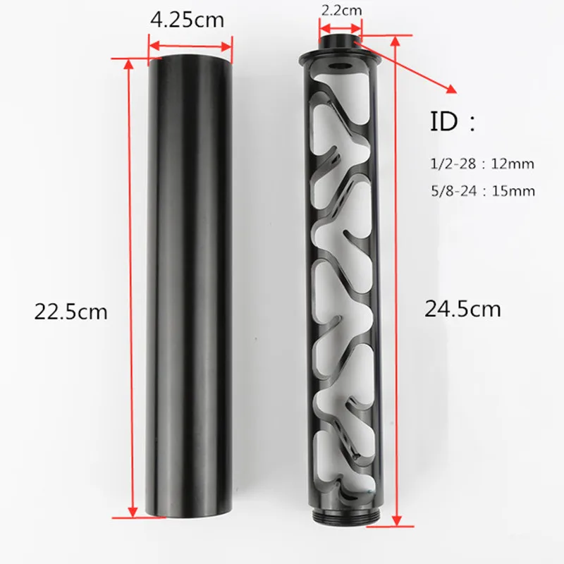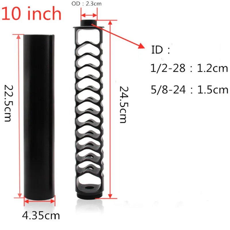 Длина: около 250 мм/10 дюймов;Внешний диаметр: около 43,5 мм/1,71 дюйма;Нитки:1/2-28 или 5/8-24 1/2-20 или M14 * 1 или M14 * 1,5 или M14 * 1LОсобенности продукта:Материал: 7075Авиационный алюминийЦвет: черный (Если требуется серый цвет, пожалуйста, свяжитесь с продавцом)Нитки:1/2-28 или 5/8-24 1/2-20 или M14 * 1 или M14 * 1,5 или M14 * 1L