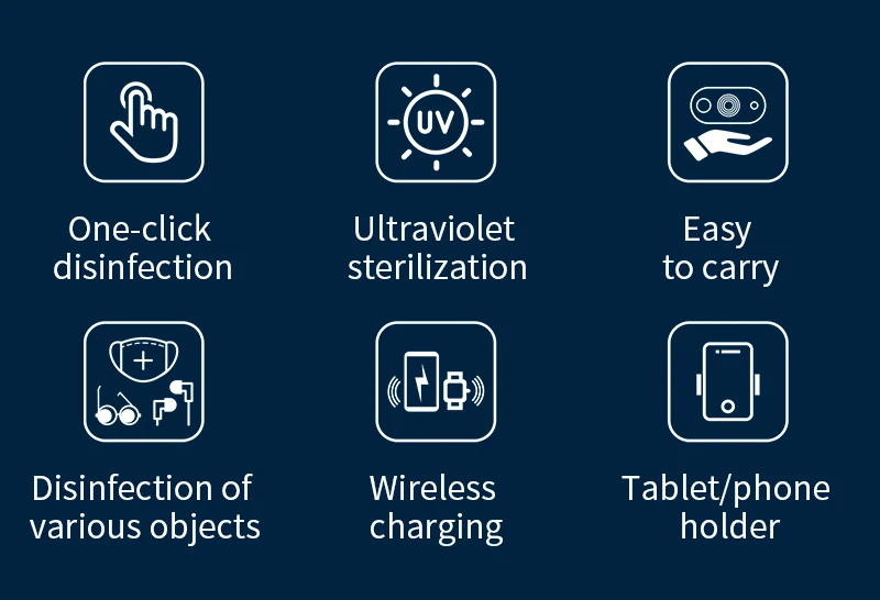 * 1 коробка для УФ-стерилизатора * 1 х USB кабель * 1 Руководство пользователя (Этот продукт не включает элементы, показывающие эффект коробки стерилизации.)