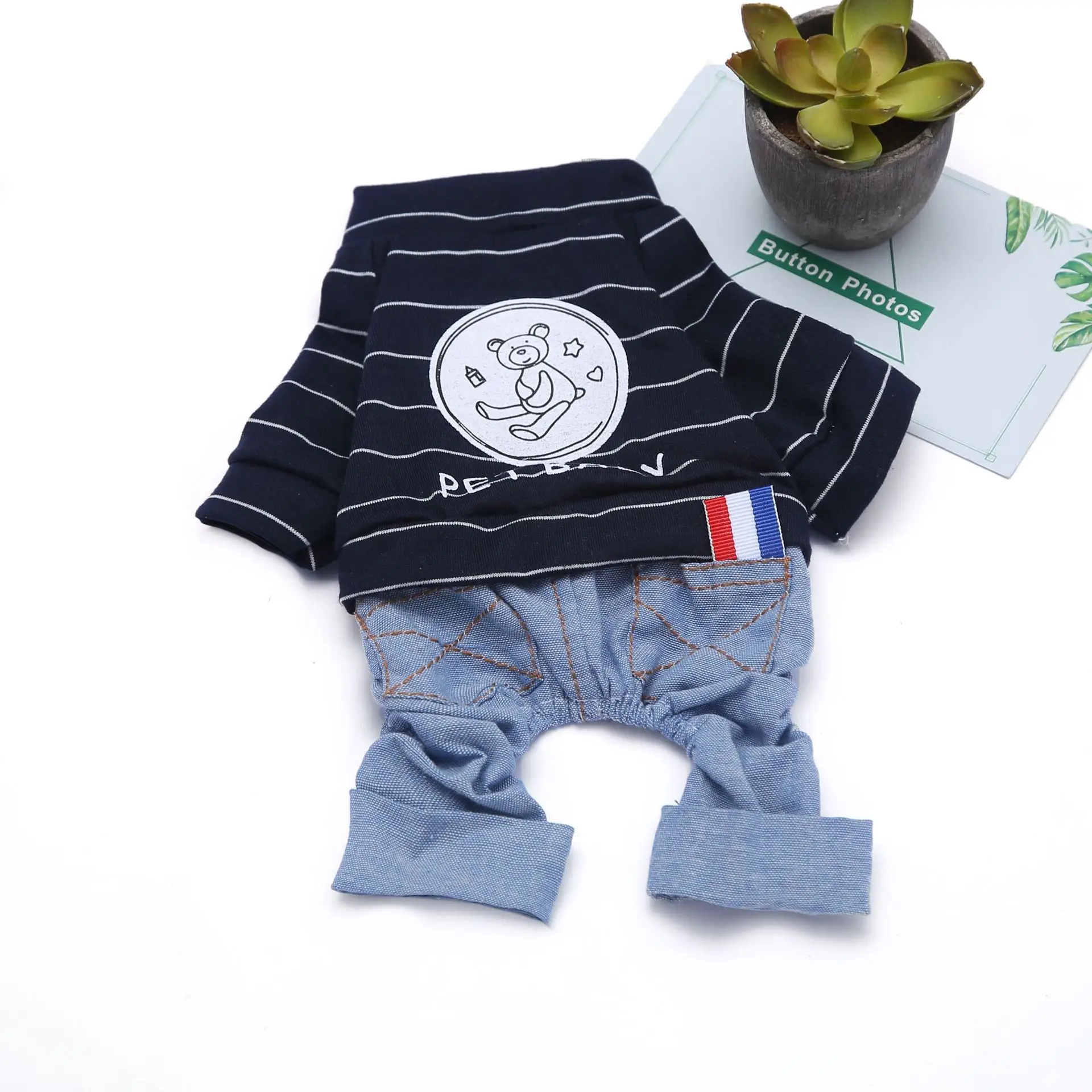 Полосатая футболка, джинсовый костюм, одежда для кошек и собак, пальто для собак, Рождественская Пасхальная одежда, зимняя одежда для чихуахуа, бульдога, щенка