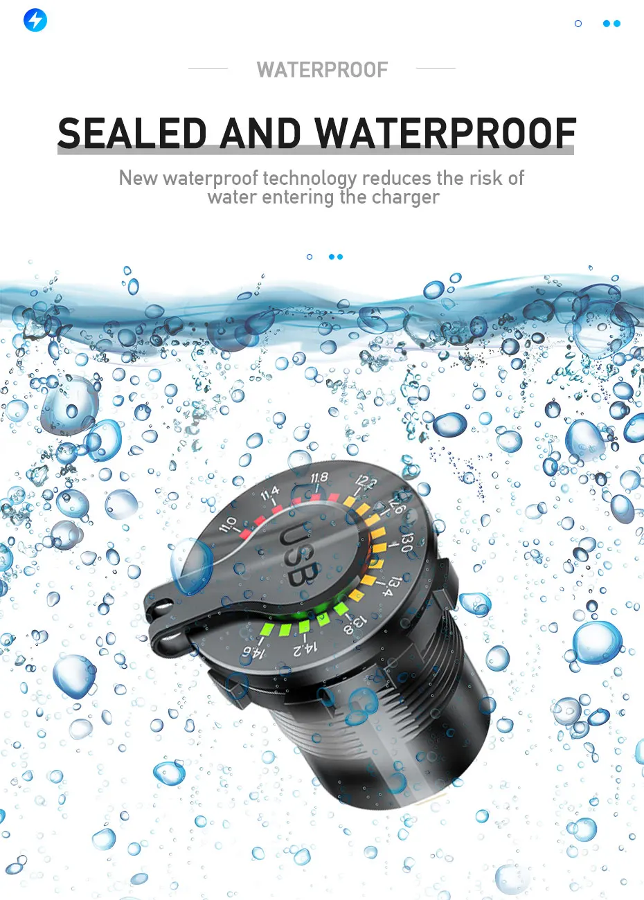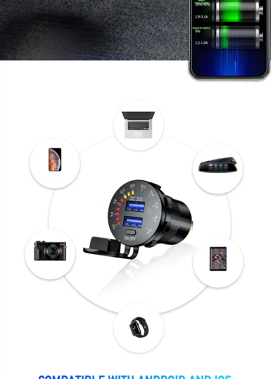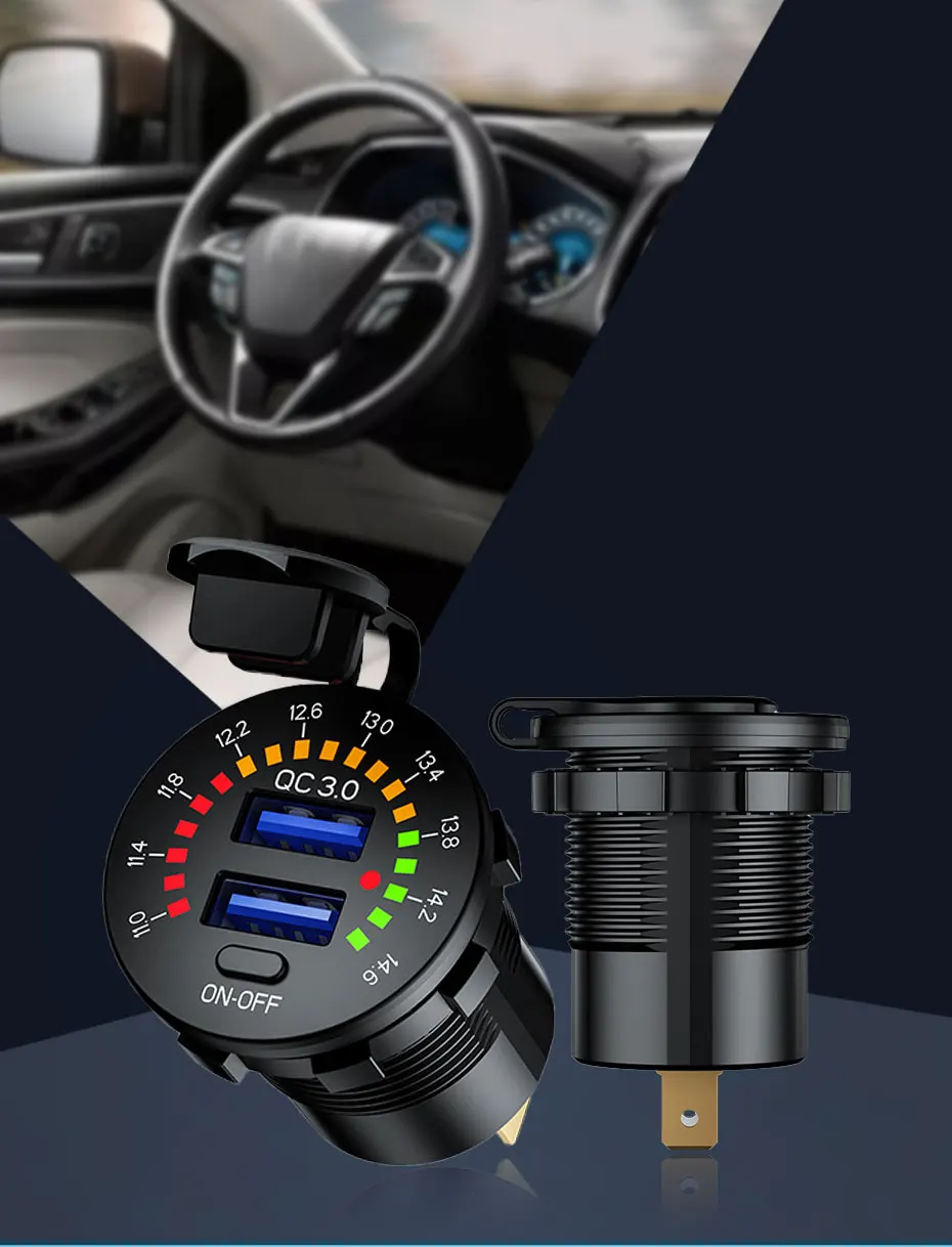 Прикуриватель автомобильное зарядное устройство с светодиодный вольтметр Streamlight двойной QC3.0 USB 12-24V водонепроницаемый 2 порта розетка вкл/выкл переключатель