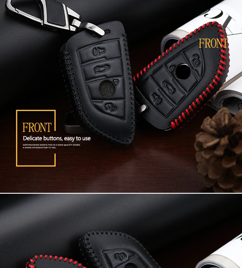 Чехол для автомобильного ключа из натуральной кожи для BMW X5 E53 E70 F48X1 X3 X4 G01F15 G05 F25 E83 G02 X6 F16 E71 аксессуары для металлического кольца для ключей