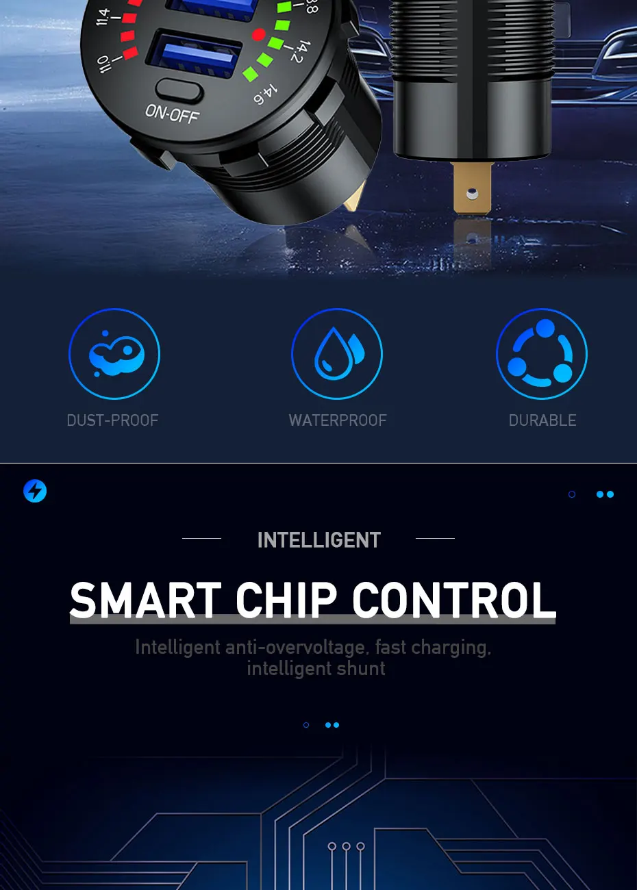 Прикуриватель автомобильное зарядное устройство с светодиодный вольтметр паровой свет двойной QC3.0 USB 12-24V водонепроницаемый 2 порта розетка вкл/выкл переключатель