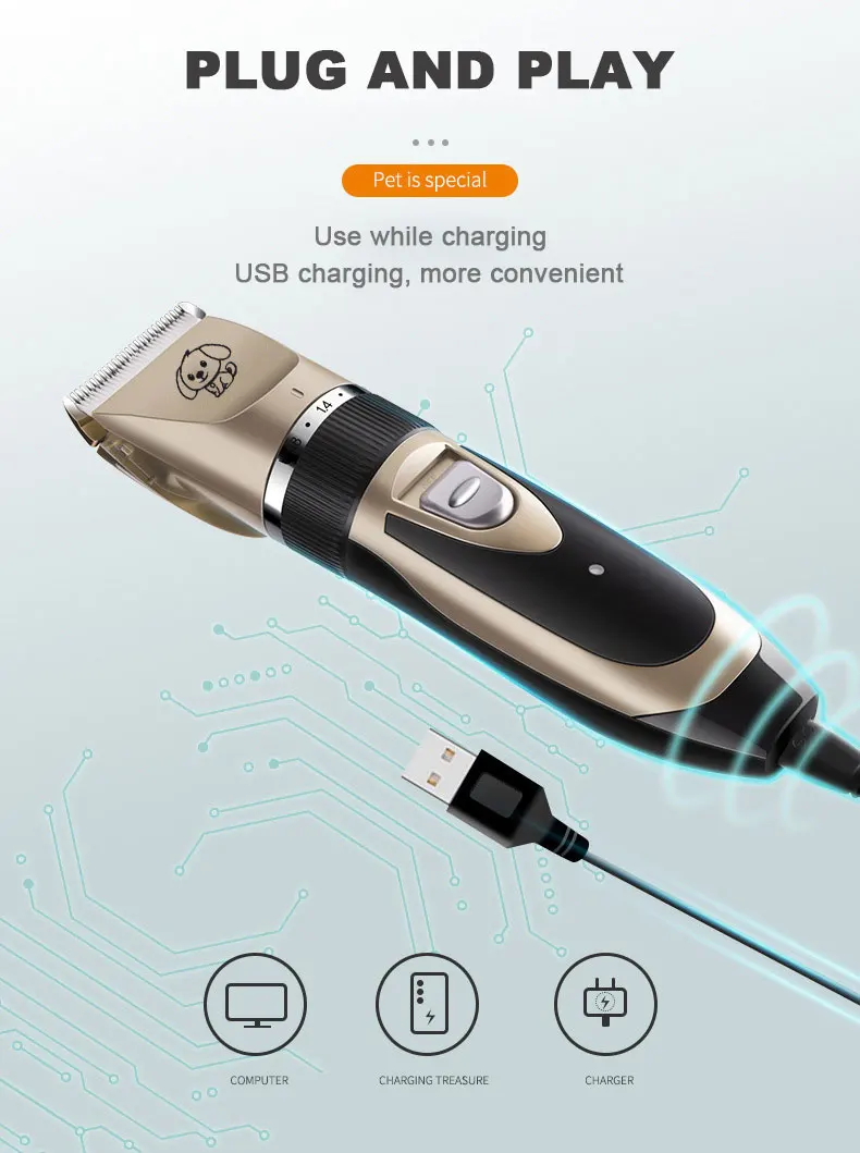 Особенности: 1. Название продукта: Зарядка и вставка двойного назначения машинки для стрижки домашних животных 2. Материал резца: титановая керамика 3. Адаптер зарядки: вход 110-240 В, выход 3 В переменного тока, 1500ма 4. Время работы: около 2 часов после полной зарядки 5. Гребень для бритья: 3/6/9/12 мм 6. Время зарядки: около 5 часов 7. Цвет: Золотой/розовый 8. Подходит для: домашних животных (собак, кошек, лошадей, кроликов) 9. Изготовлен из титана, с достаточным количеством материала, антиударный, титановый металл не вызовет аллергию на кожу 【 Все в одном 】наборы для ухода за собакой поставляются с 11 видами инструментов: 1 × машинка для стрижки домашних животных (включая перезаряжаемую батарею),1 × кабель для зарядки, 1 × щетка для очистки, 4 × приспособления для расчесывания, 1 × ножницы из нержавеющей стали, 1 × Набор для стрижки ногтей, 1 × пилка для ногтей, 1 × расческа из нержавеющей стали. Машинки для стрижки собак подходят для всех домашних животных! (Примечание: Все аксессуары под чехол внизу) 【Безопасный и эффективный трим】 5 регулируемых функций для гребня от 0,8 мм до 2 мм. С 4 насадками направляющие расчески: истончение, (3 мм/6 мм/9 мм/12 мм), благоприятный для кожи контур-следующие расчески делают его безопасным, легким, удобным 【 Ультра-quiet】эта машинка для стрижки домашних животных с прецизионным мотором, низкая вибрация обеспечивает бесшумную работу шепота и бесстрессовый уход 【Эргономичный дизайн 】 изящный дизайн позволяет легко держать и контролировать. Поставляется с универсальным зарядным устройством и чистящей щеткой для вашего удобства. Посылка включает в себя: 1 x машинка для стрижки домашних животных 1 х перезаряжаемая батарея (встроенный) 1 x машинка для стрижки ногтей 1 x пилка для ногтей 1 х USB кабель Чистящая Щетка-1 шт. 1 x Ножницы из нержавеющей стали 4 x насадки для гребня (3/6/9/12 мм) 1 х Руководство