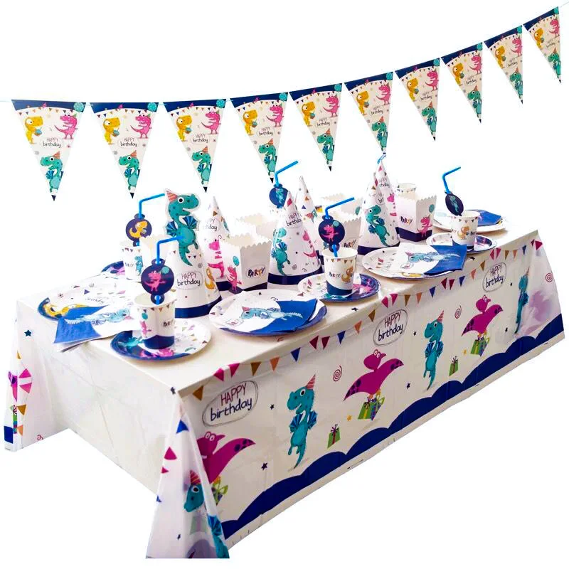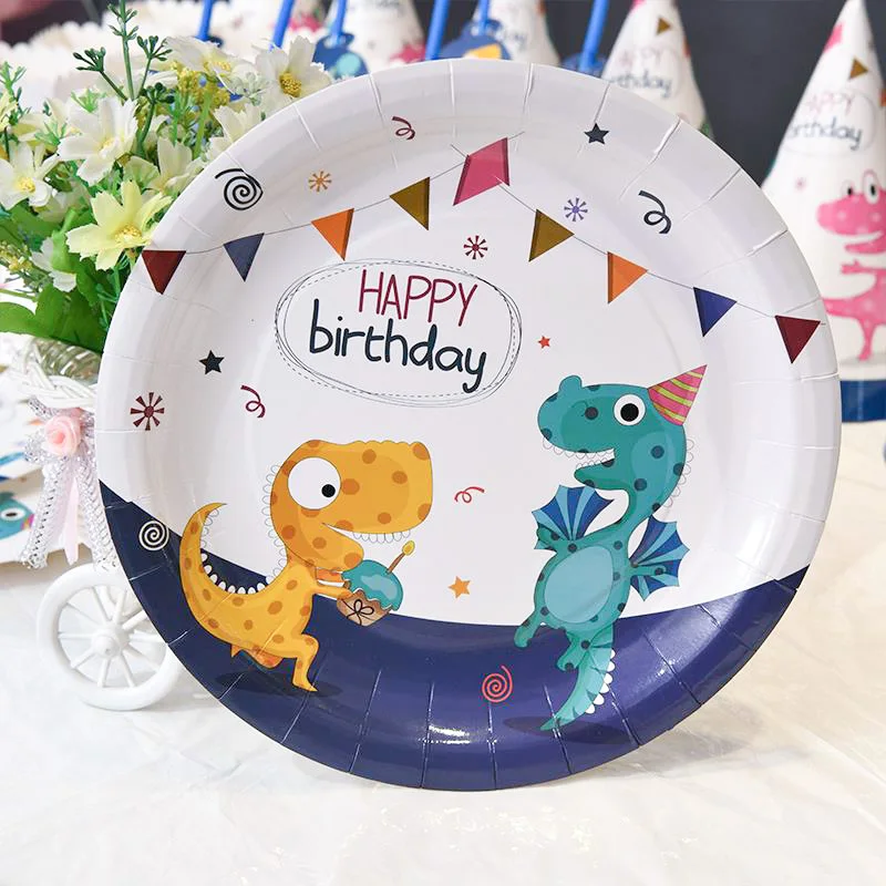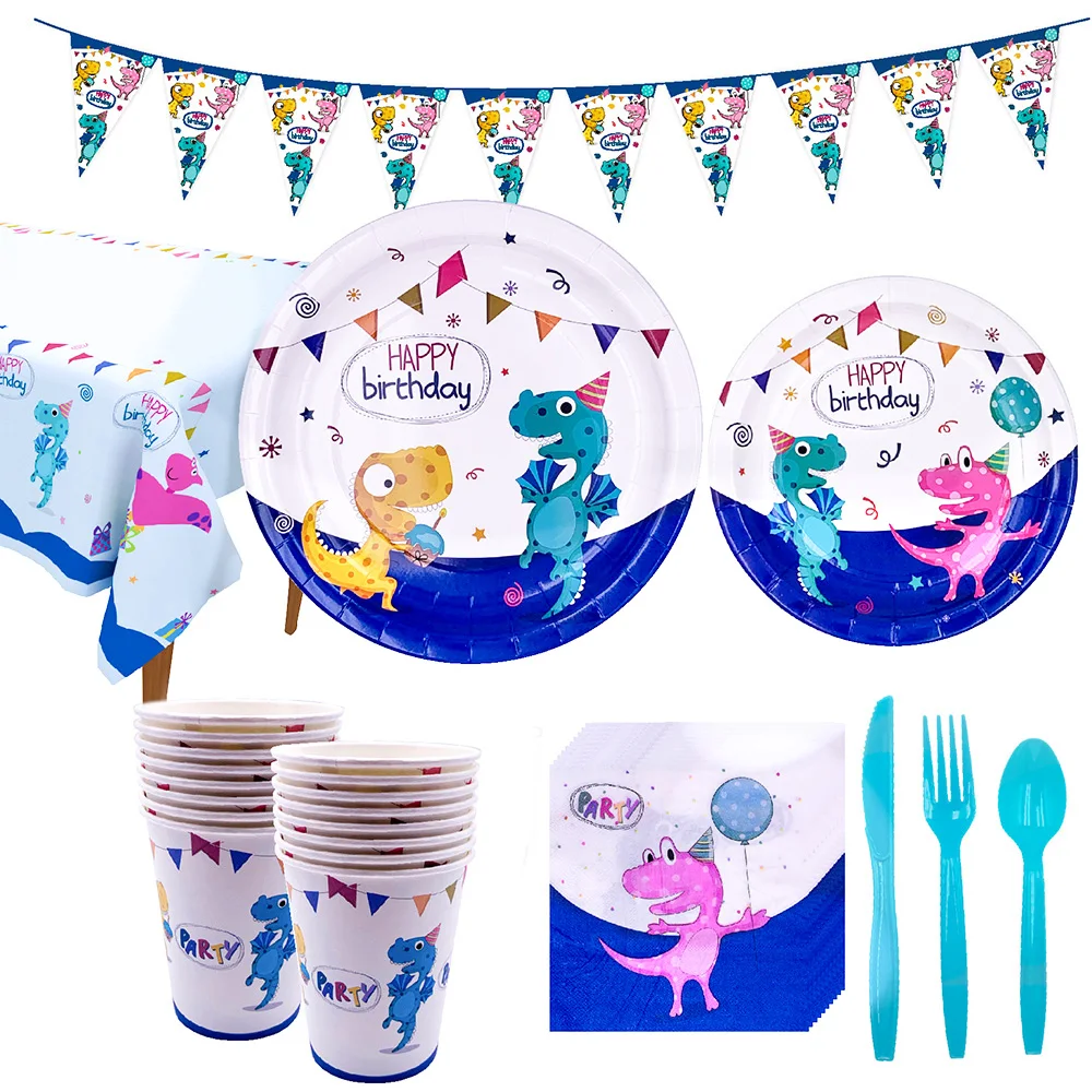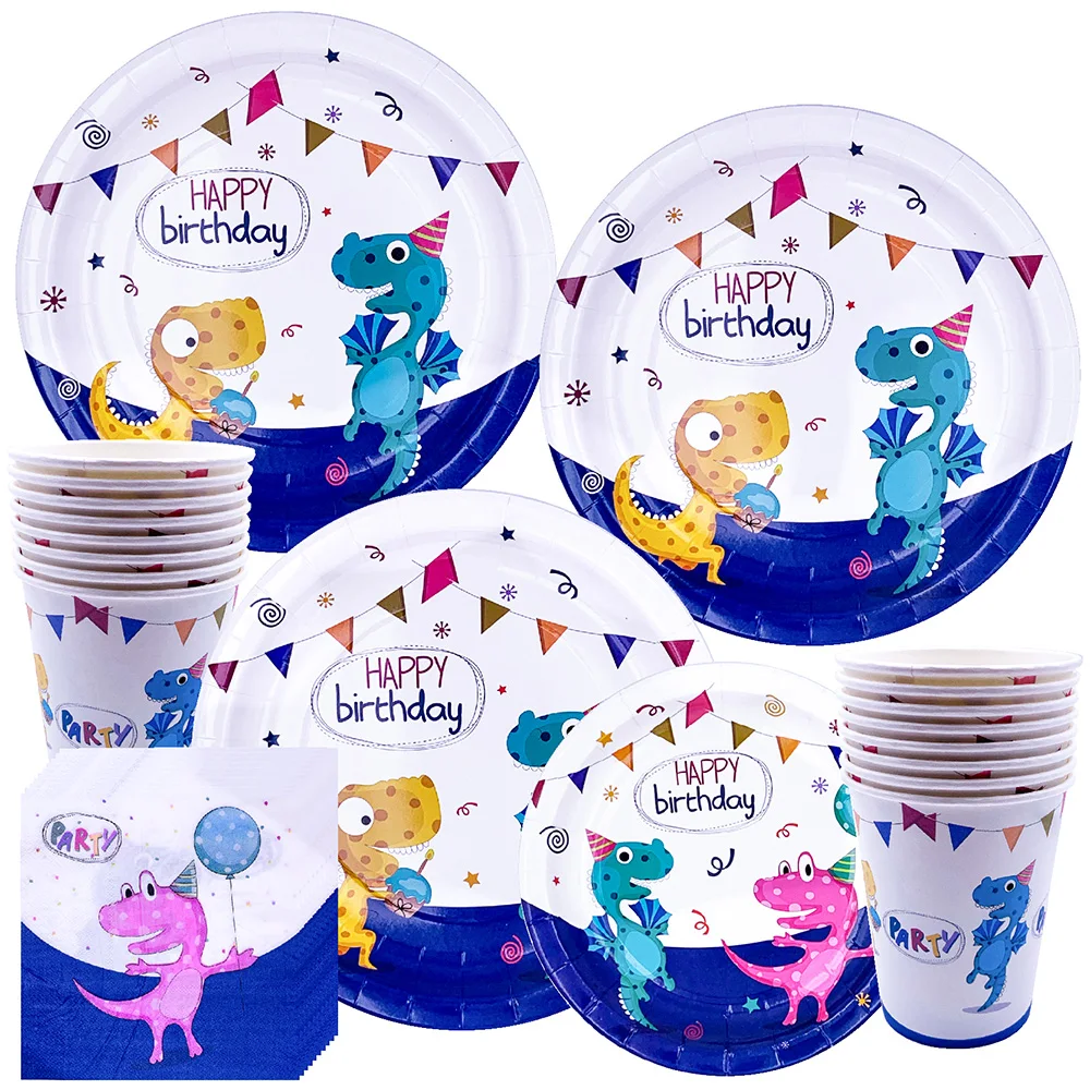 Вечерние столовые приборы с динозавром, одноразовые бумажные тарелки, чашки, скатерть, торт, Топпер, вечерние принадлежности на день рождения для мальчиков и девочек