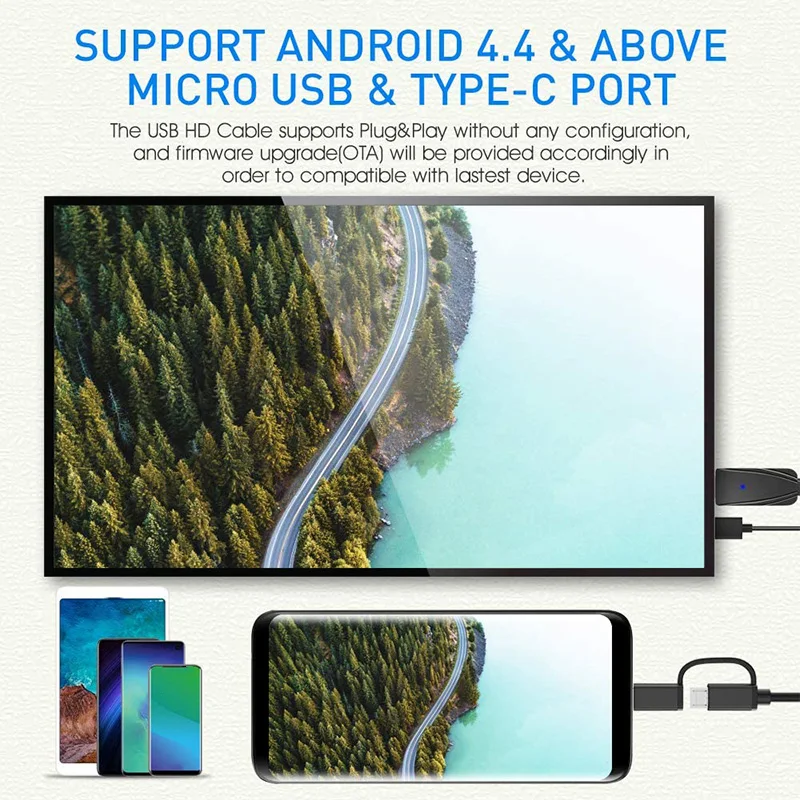 [Support Android 4.4 and above] The USB high-definition cable supports plug and play, and accordingly provides firmware upgrade (OTA) to be compatible with the latest devices.