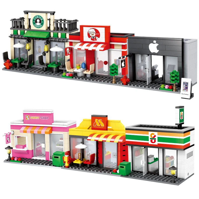 Kawaii Mini Street City 3D розничный магазин кафе яблоко Lepinblocks McDonald Shop KFCE обучающий конструктор игрушка для детей Lepining