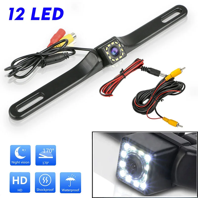 Автомобильная камера заднего вида, 12 светодиодов, CCD, 170 °, HD, водонепроницаемая