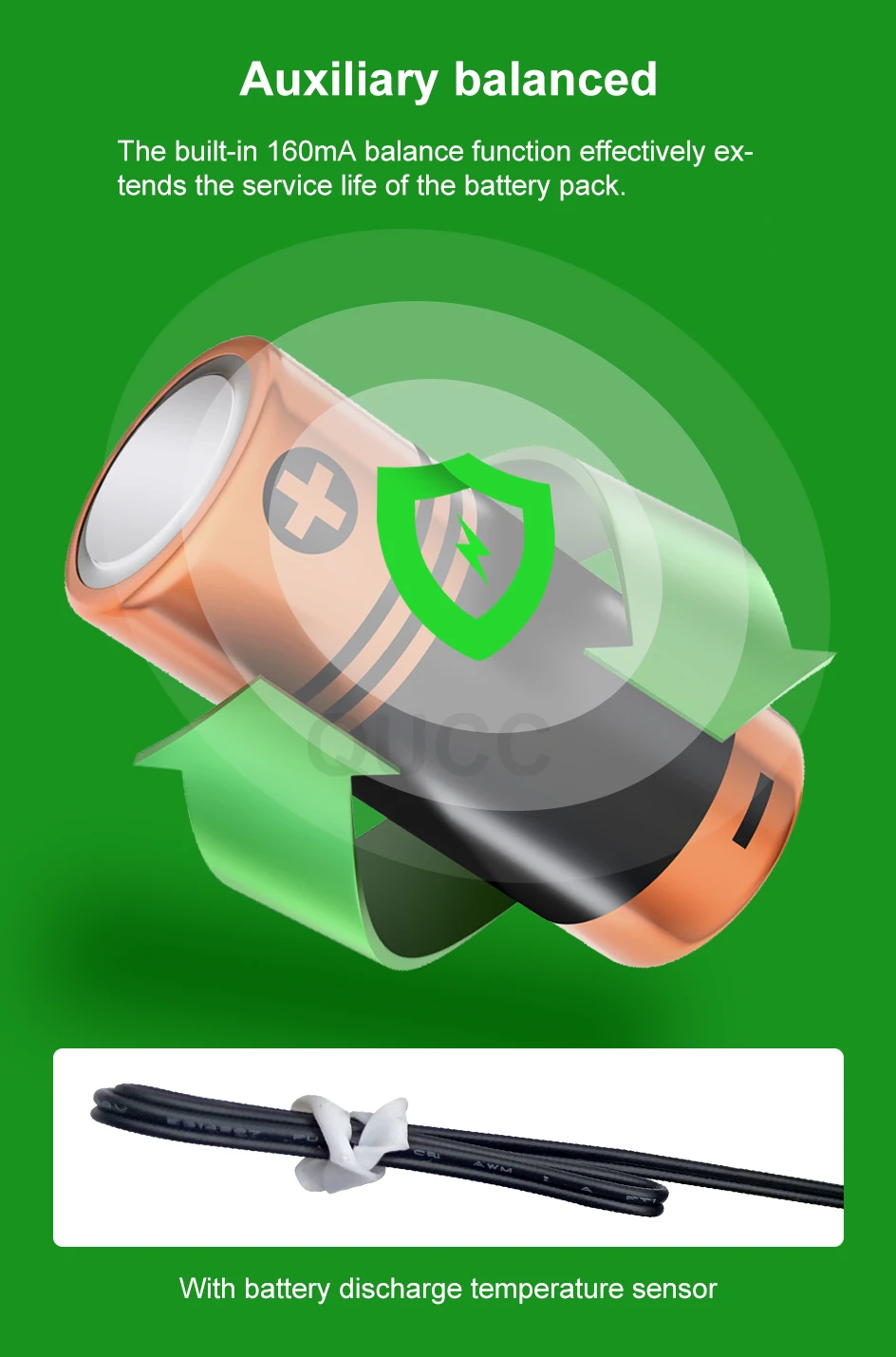 Lifepo4 13S-20S❖Charging отрезатьНапряжение обнаружения: 3,75 V ± 0,05 VНапряжение высвобождение аттрактанта: 3,45 V ± 0,05 VЗадержка обнаружения: 2000 мс