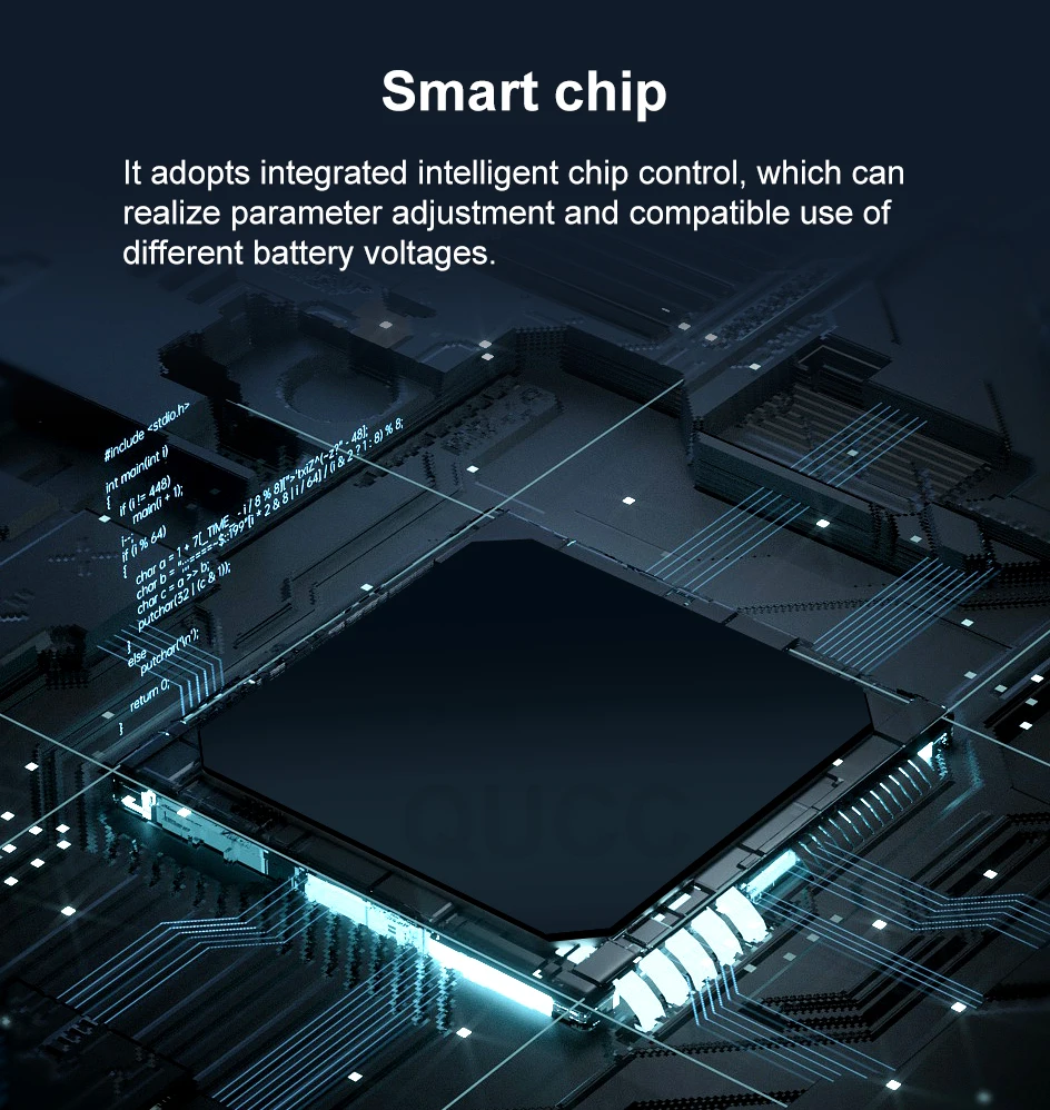 Умный чипОн принимает интегрированный интеллектуальный чип управления, который может осуществить настройку параметров и совместимое использование различных напряжений батареи.