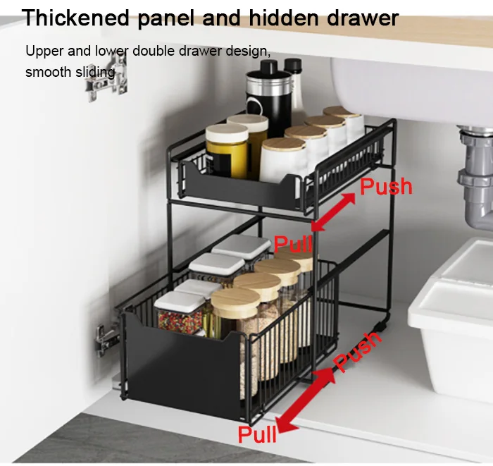 Органайзер для скользящей корзины: Обеспечивает универсальное хранение в компактных помещениях, чтобы сохранить предметы снабжения и предметы первой необходимости аккуратно хранятся в вашей кухне ванной комнаты офиса, раздвижные корзины для легкого доступа в ограниченном пространстве.