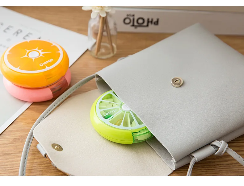 Коробка для таблеток портативный лимон портативный семь-сетка вращающийся мини таблетки лекарство дозирования коробка для хранения