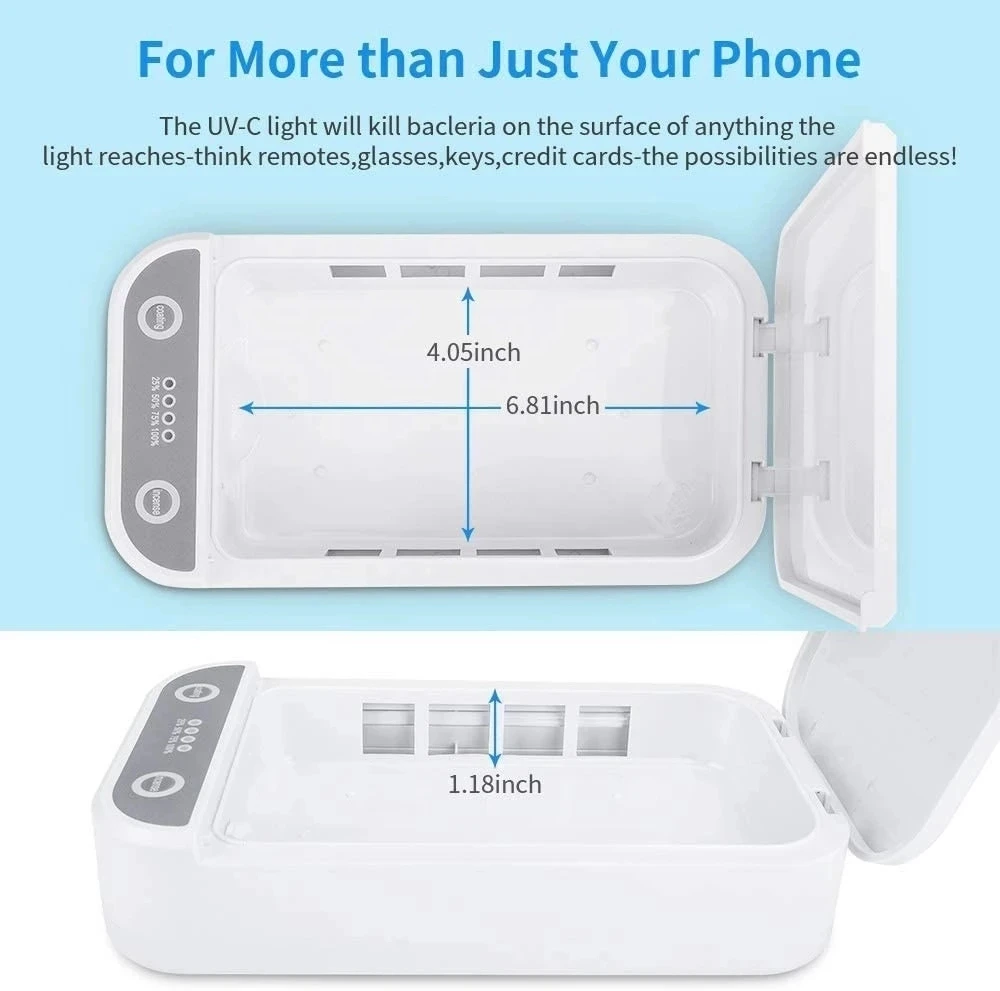 Совместимость с большим количеством устройств-это стерилизатор коробка может держать смартфон до 6,5 дюймов. Кроме мобильного телефона, он также может дезинфицировать ключи, ювелирные изделия, карты, кисти для макияжа и другие мелкие предметы. Идеальный подарок для себя и всех, кто заботится о гигиене.