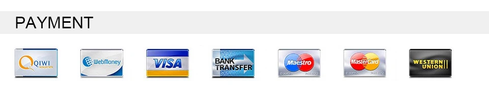 1. Принимаем: AliPay, West Union, TT, кредитные карты (через безопасный платежный процессор ESCROW)