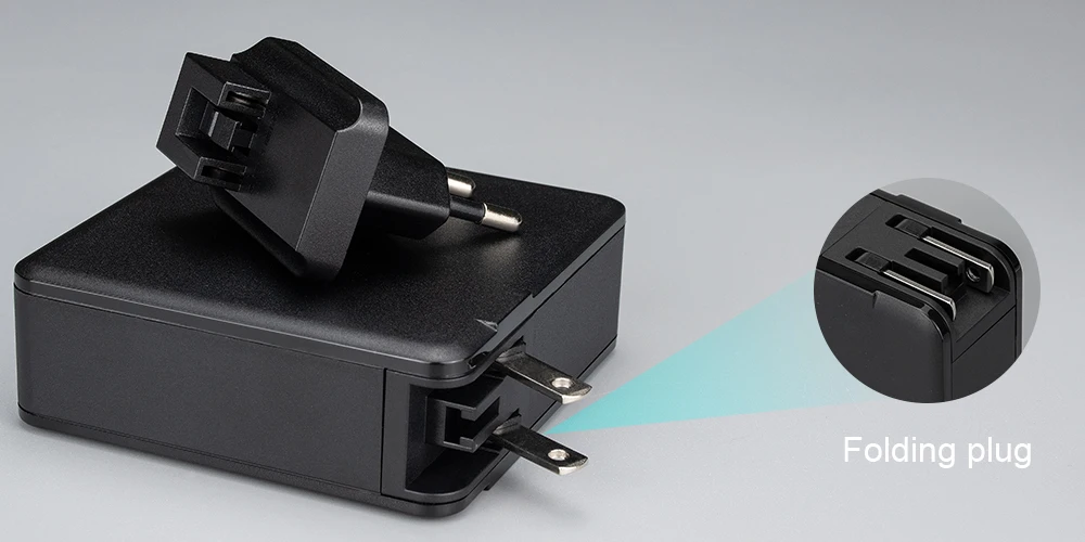 Продукт поставляется с вилкой US, которая может быть переключена между вилкой US/EU и вилкой UK, добавив аксессуары.
