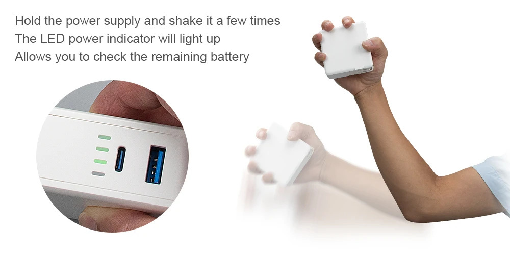 Изделие не имеет никаких кнопок, а общий внешний вид прост и красив. Когда вам нужно проверить оставшуюся мощность, просто встряхните продукт, чтобы узнать оставшуюся мощность.