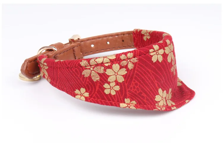 Треугольный шарф в японском стиле, ошейник для домашних животных, изготовлен из кожи, с пряжкой, тонкая работа, товары для домашних животных для кошек и собак