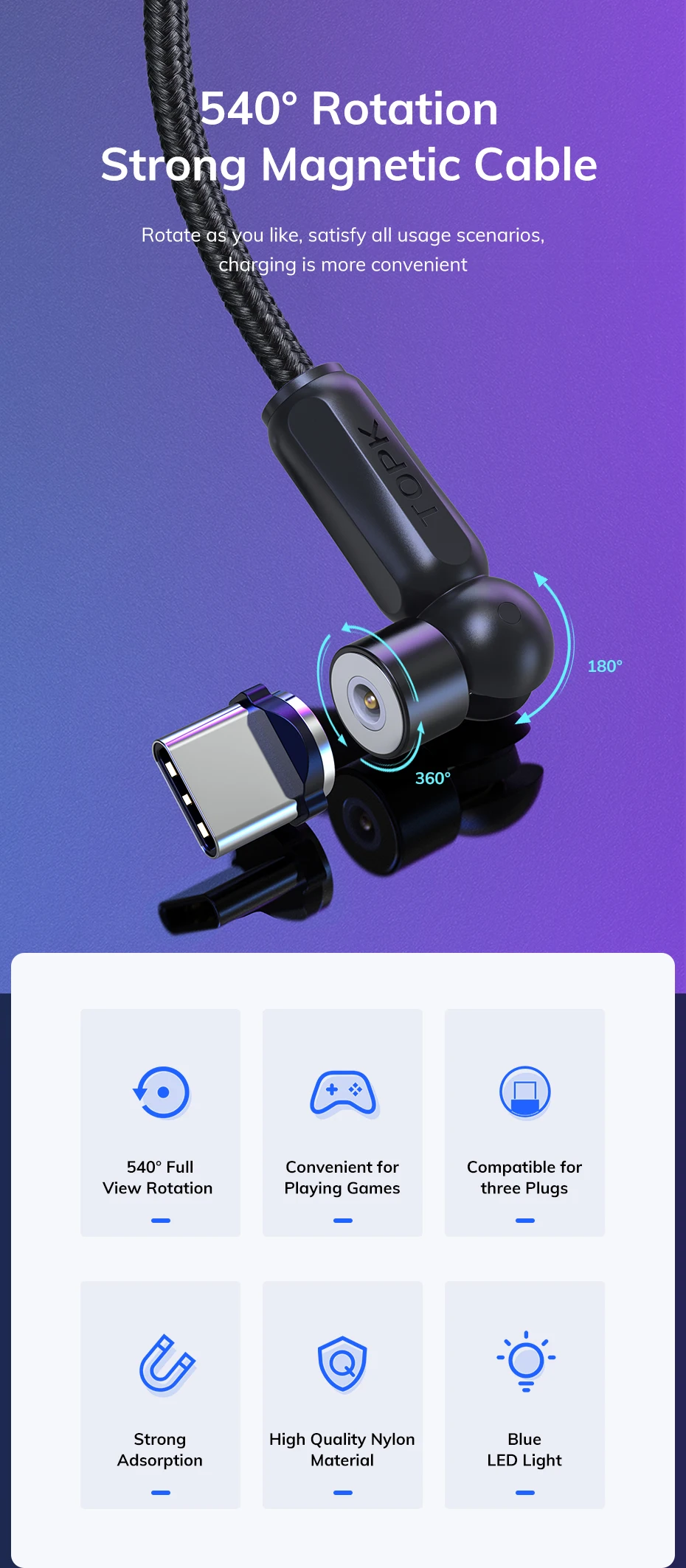 Сильный магнитный кабель с поворотом на 540 °