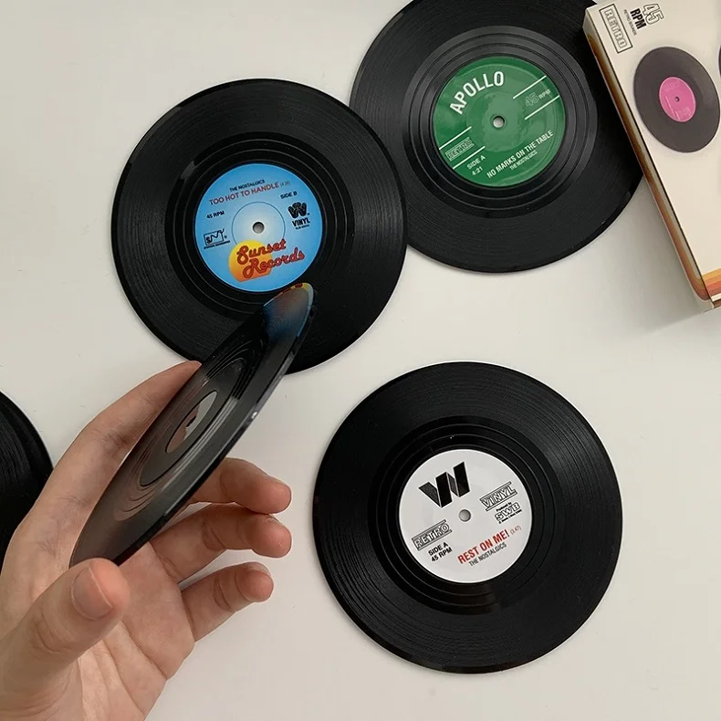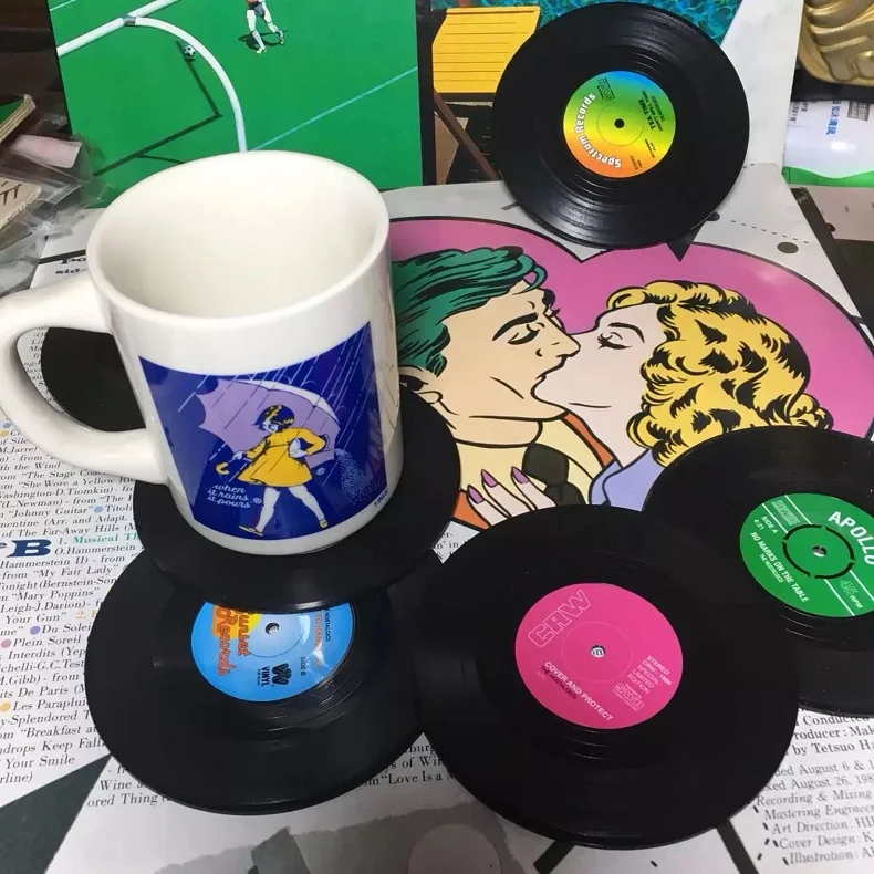 Виниловые подставки для записей, коврики для столов, подставки для напитков, подставки для столов, Нескользящие Изоляционные Коврики, креативные кофейные кружки, термостойкие прокладки