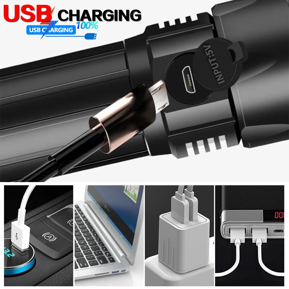 Перезаряжаемый фонарик высокой яркости светодиодный, супер яркий, масштабируемый, фонарь, водостойкий-лучший кемпинг, аварийные фонарики